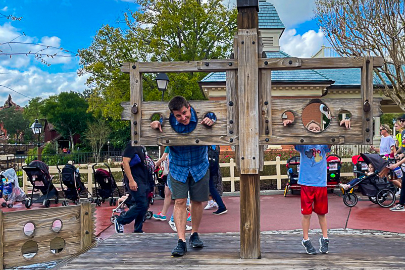 Sitting on the Fountain in front of “The American Adventure” in Epcot’s World Showcase, 6/11/2000 vs 11/14/2022 (22 years, 5 months, 3 days)